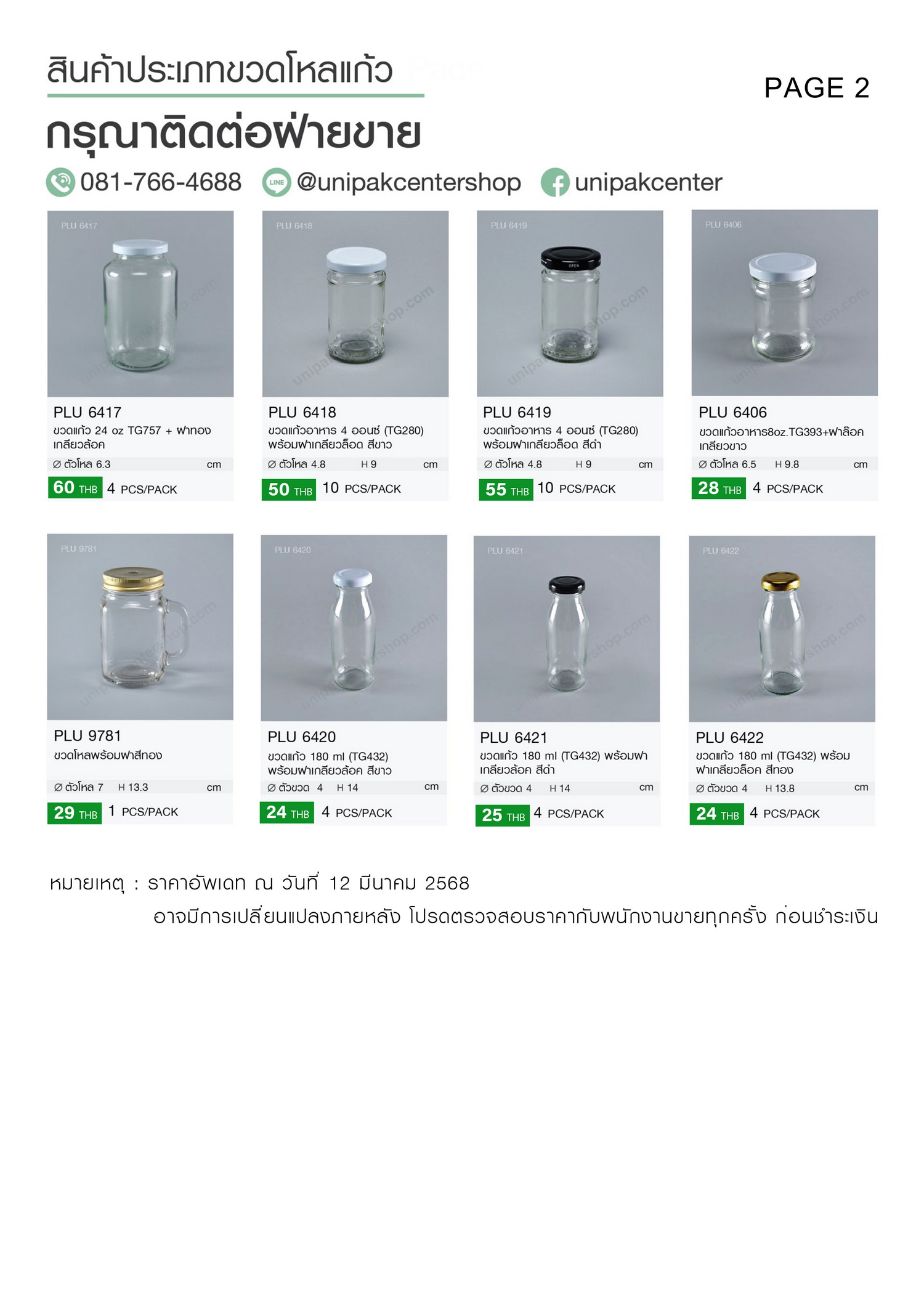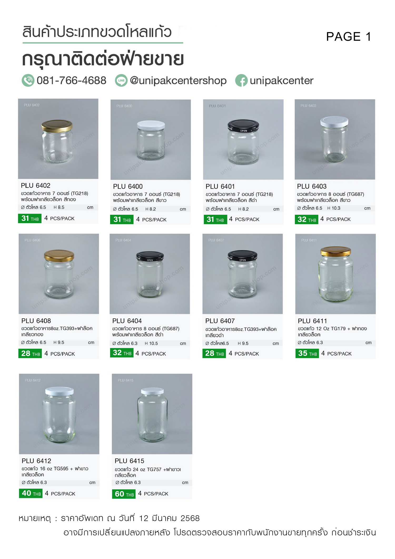 กลุ่มสินค้าประเภท ขวดแก้ว โหลแก้ว หรือภาชนะแก้วต่าง ๆ กรุณาติดต่อฝ่ายขายโดยตรง ก่อนชำระเงิน เพื่อเช็คสินค้าและค่าใช้จ่ายเพิ่มเติมในการคำนวณน้ำหนักการจัดส่งค่ะ