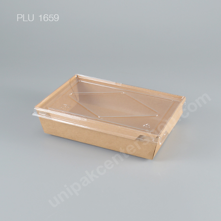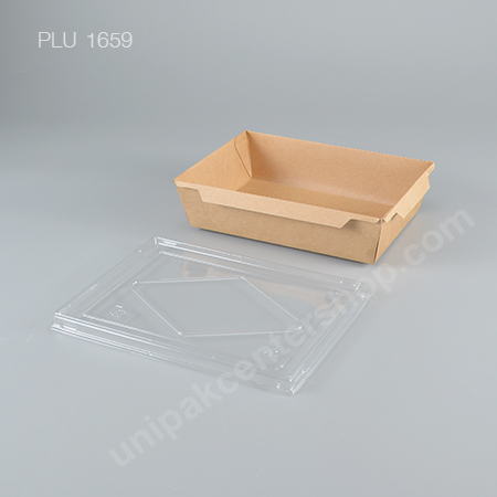 กล่องอาหารกระดาษคราฟท์เหลี่ยม 1 ช่อง 1200 ml + ฝา PET ใส