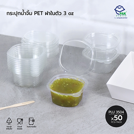 PLU 3504 กระปุกน้ำจิ้ม 3 oz PET ฝาในตัว (SC)