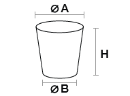 | SIZE (cm.) | DIAMETER | HEIGHT (H) | CAPACITY (cc.) | |