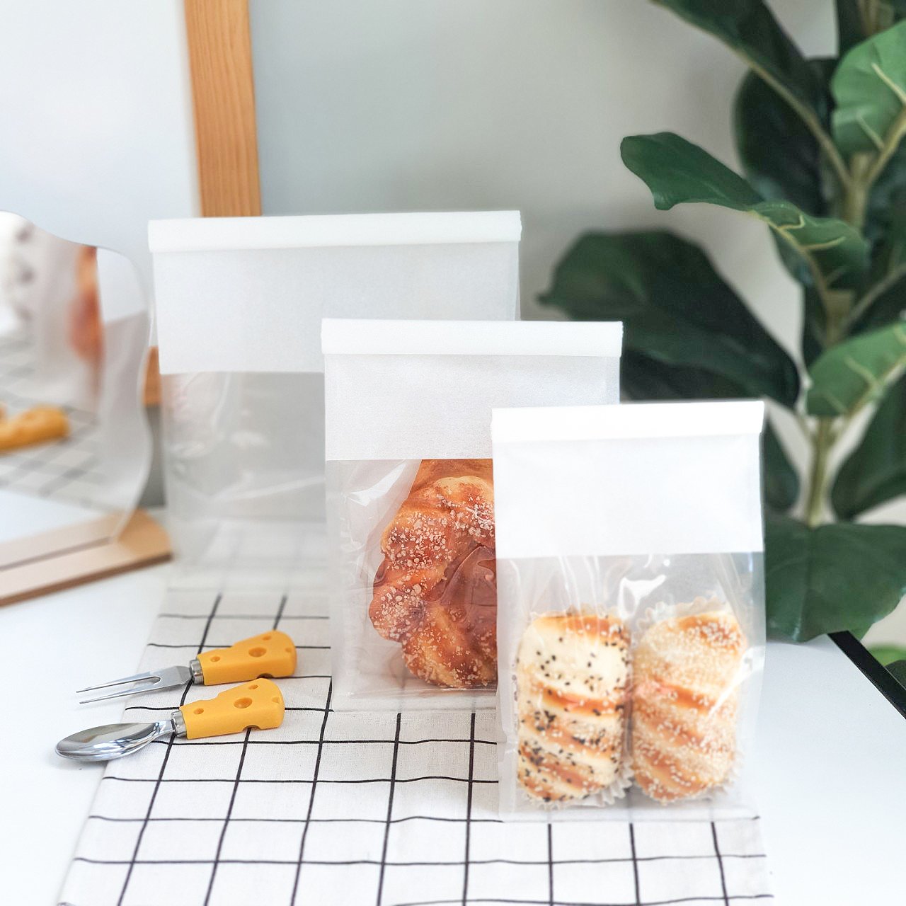 ถุงขนมปังพลาสติกใสเคลือบขาว Size L