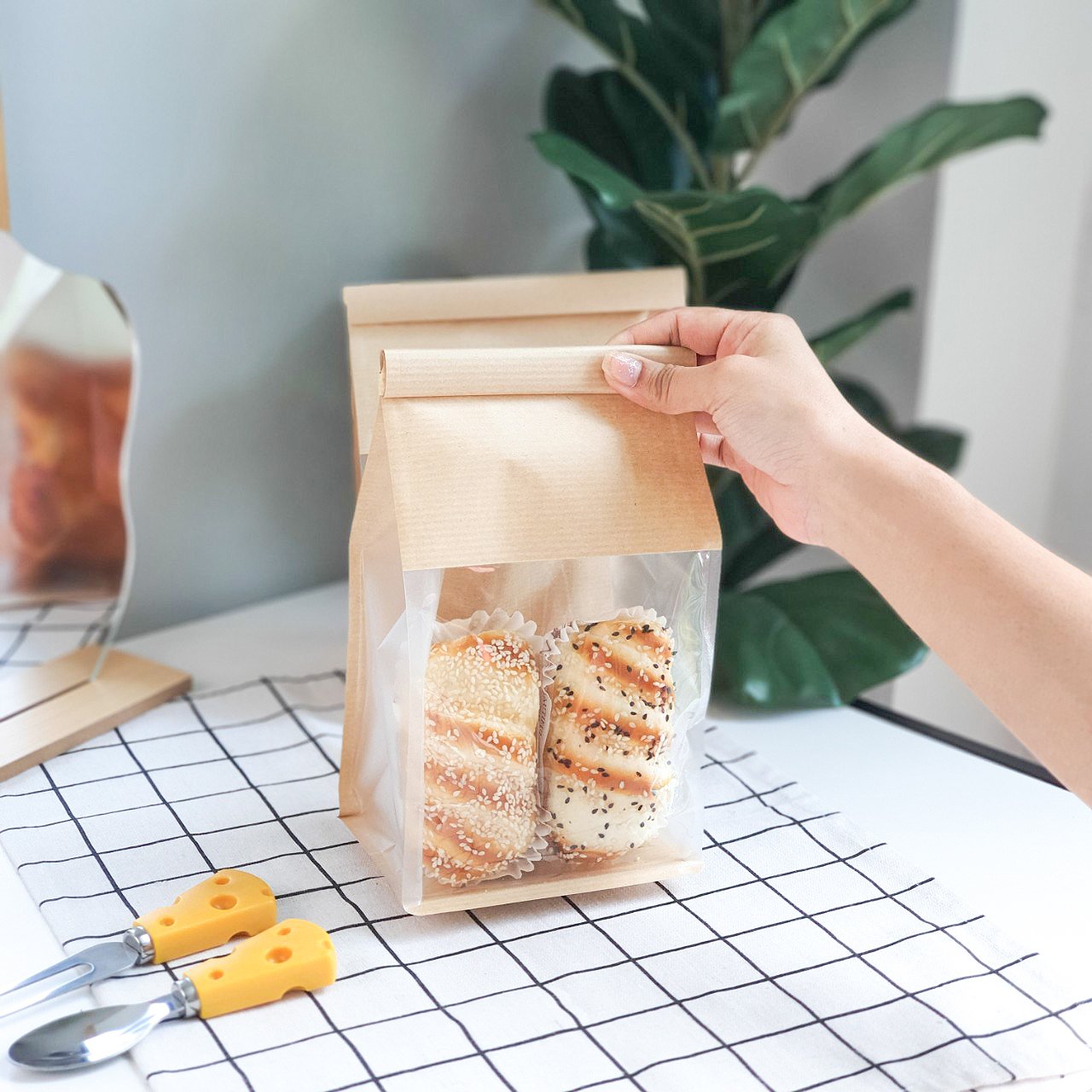 | วัสดุ (MATERIAL) | : ด้านนอกพลาสติก PET ใสเคลือบฟิลม์กระดาษคราฟท์ ด้านในเคลือบ CPP (Cast Polypropylene Films) |