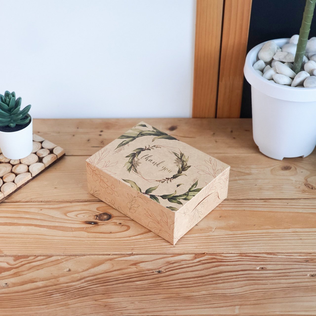 กล่องกระดาษสแน็คสี่เหลี่ยมผืนผ้า ลายใบไม้เขียว