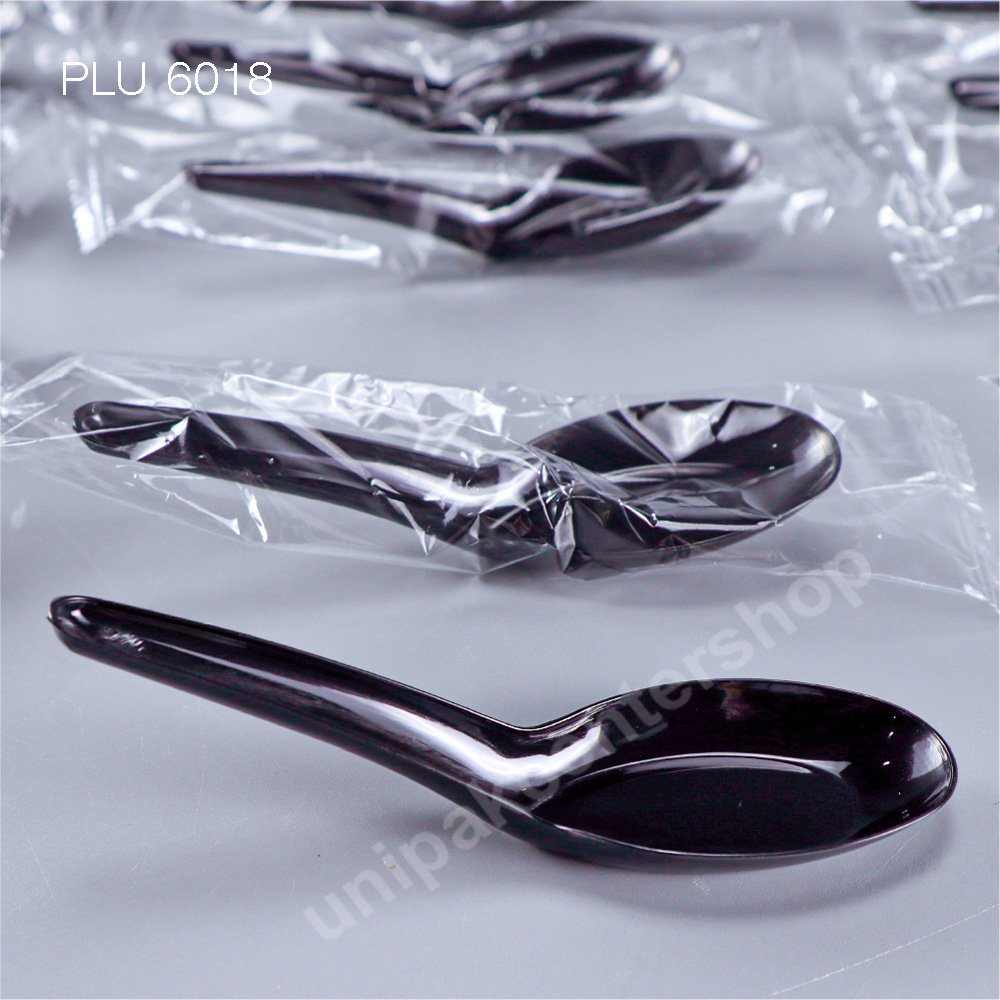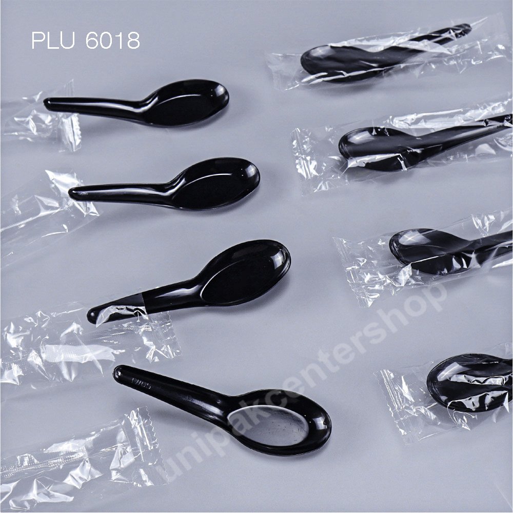 ช้อนสั้น PP ดำ หุ้มซองพลาสติกใส