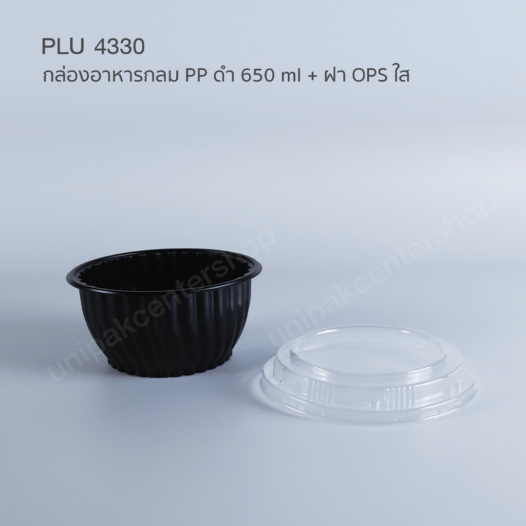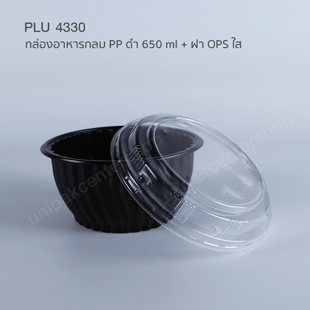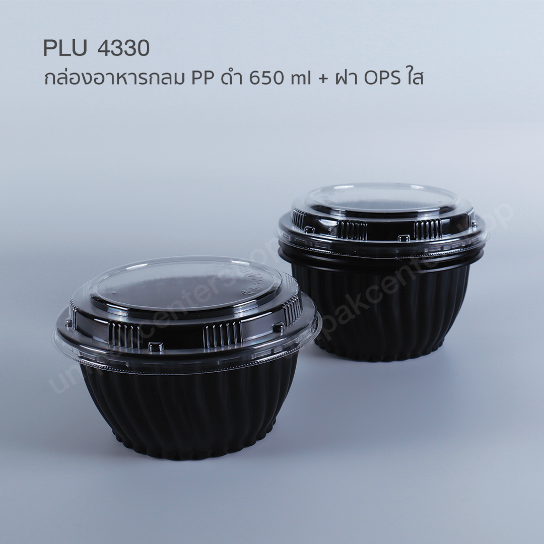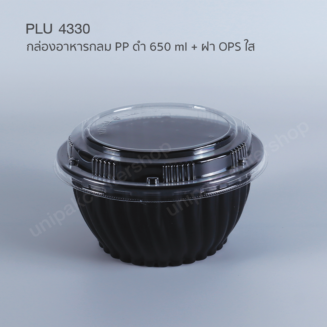 | วัสดุ (MATERIAL) | : ตัวกล่องกลมพลาสติก PP ดำ / ฝา OPS ใส |