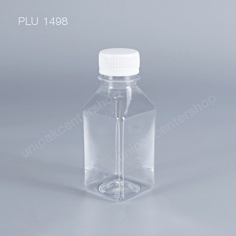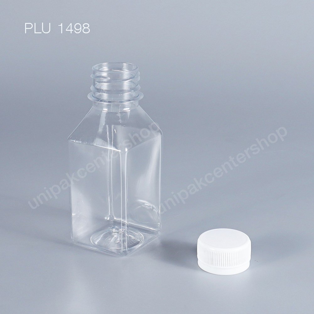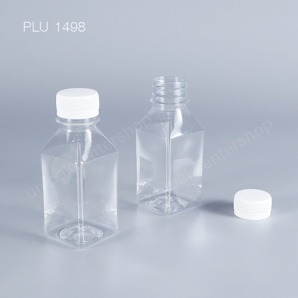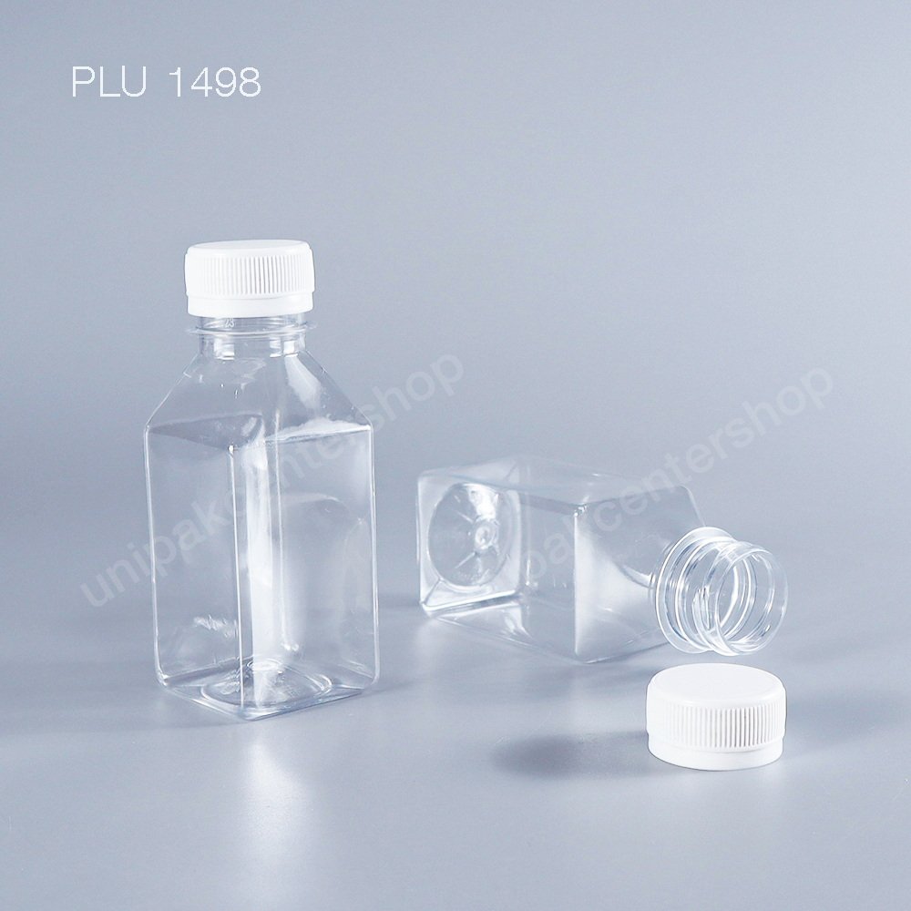 ขวดน้ำผลไม้ PET ใส ทรงเหลี่ยมเรียบ 150 cc / ฝาขาวปาก 30 มม.