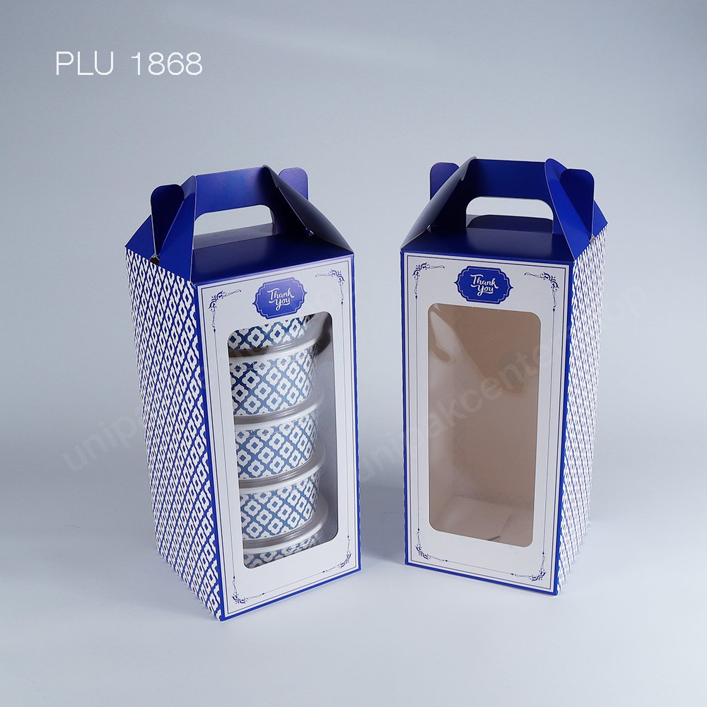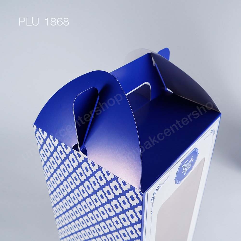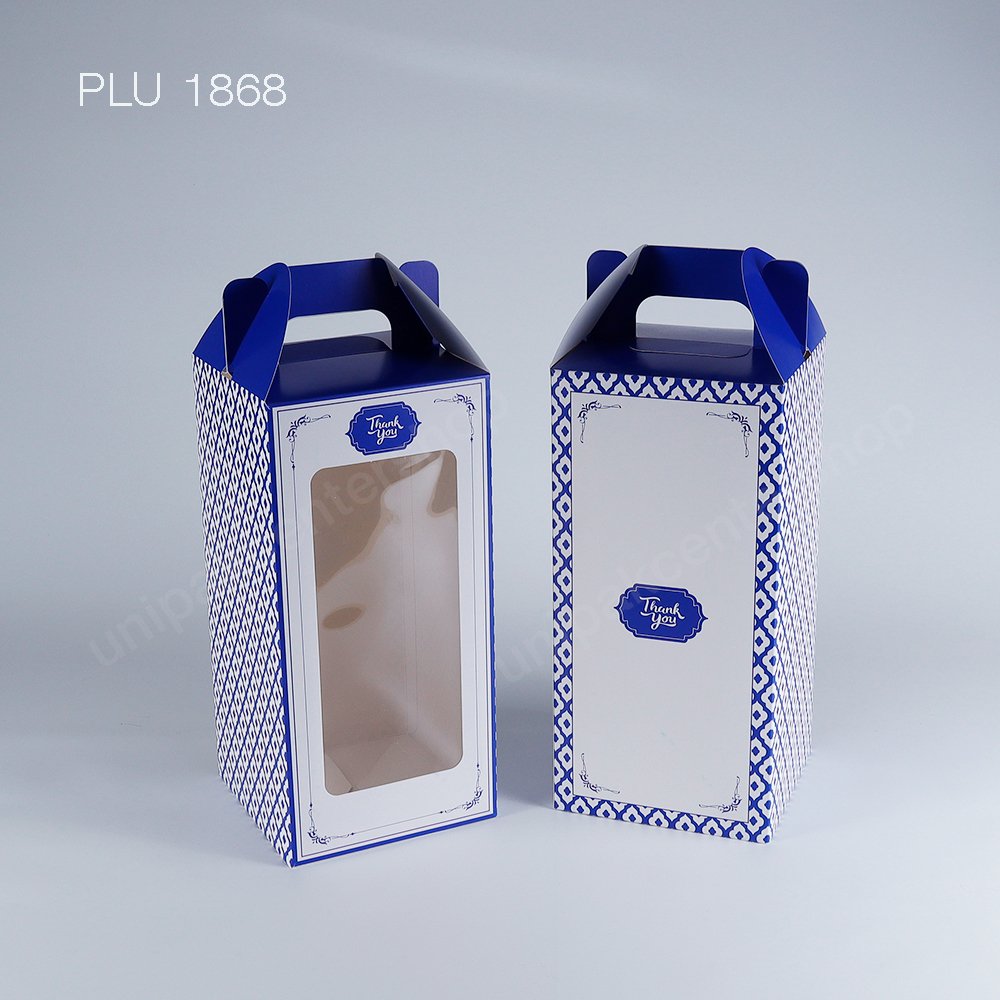 กล่องกระดาษหูหิ้วพิมพ์ลายคราม ขนาด 15.0 x 15.0 x 31.5 cm (รวมหูหิ้ว)