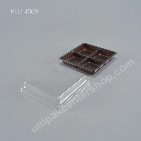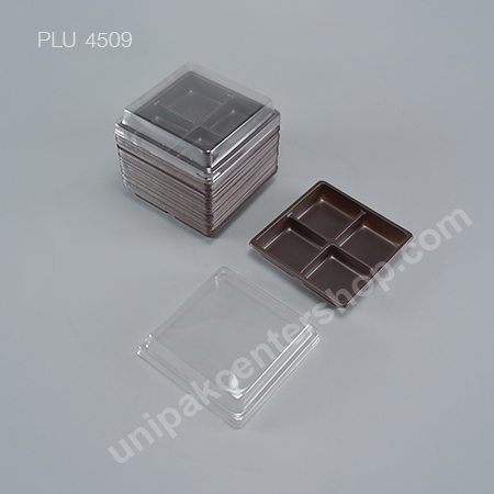 กล่องขนมเปี๊ยะ โมจิ วุ้น 4 ช่อง ฐานน้ำตาล + ฝา (Mochi Box) E44| SIZE (cm.) | WIDTH (W) | LENGTH (L) | HEIGHT (H) |